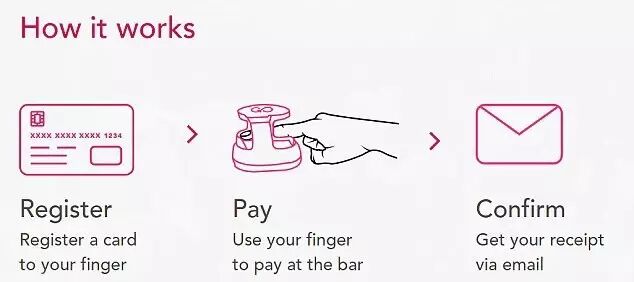 提供这项技术的公司名叫Sthaler,这家公司的总部位于伦敦。据悉,这项技术使用红外线扫描仪来读取你手指上的静脉纹理,并让它与你的银行卡相连,即可在支持相关技术的消费场所动动手指完成付款。
